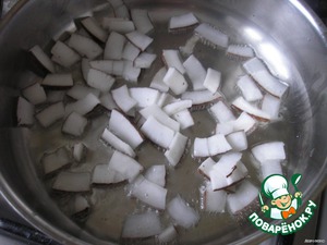 - Кокос (порезанного кокоса,см. 1 шаг) — 0,5 стак.