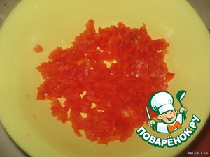 За это время приготовим соус. Мелко нарежем перчик. У меня красный.