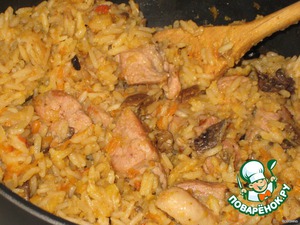 Рецепт «Свинина с рисом, чечевицей и грибами»: