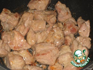 Выложить свинину и обжарить на большом огне до слегка золотистой корочки.