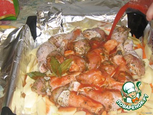 Выпекать при 220 град. до готовности, фольгу в конце открыть. Приятного аппетита!
