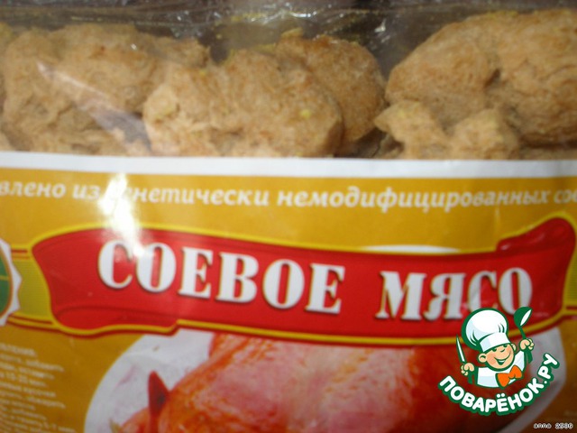 я, наверное, плохо воду отжала из соевого мяса, водянистое такое мяско и безвкусное получилось... не поджарилось, хотя я уже жарила дооолго