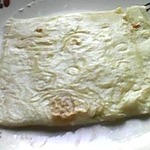 Я обжариваю с одной стороны, а потом переворачиваю и сразу еще на сковороде выкладываю на одну половину пюре, а когда вторая сторона поджариться сразу на сковороде сгибаю пополам, и уже на тарелке смазываю сливочным маслом.