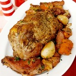 даете запектись второй стороне, еще минут 15. Освободив из горячих рук духовки, дайте ей отдохнуть минут 10, не режьте в туже минуту, что бы сохранить весь сок в ножке.