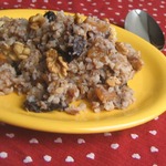 Грецкие орехи сильно не измельчала, хотя и опасалась, что они будут выделяться твердыми кусочками в каше,но получилось все довольно однородно по консистенции.