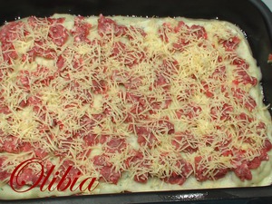 ... снова картофель, фарш, слой тертого сыра, слой картофеля и смазать маслом.