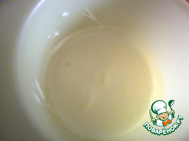 Для бисквита яичные желтки отделить от белков, растереть с сахаром добела, добавить 10 стол. ложек холодной воды, хорошо перемешать