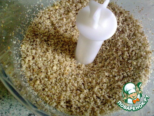 Стакан грецких орехов измельчить в блендере (или пропустить на мясорубке)