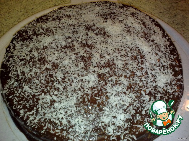 Теплой глазурью полить наш тортик. Посыпать кокосовой стружкой (или украсить по желанию). Поставить в холод часика на 3