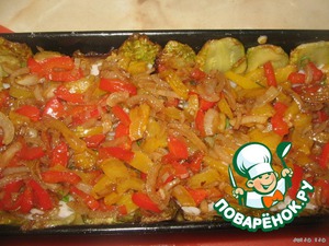 - Перец болгарский (у меня по половинке красного и жёлтого) — 1 шт