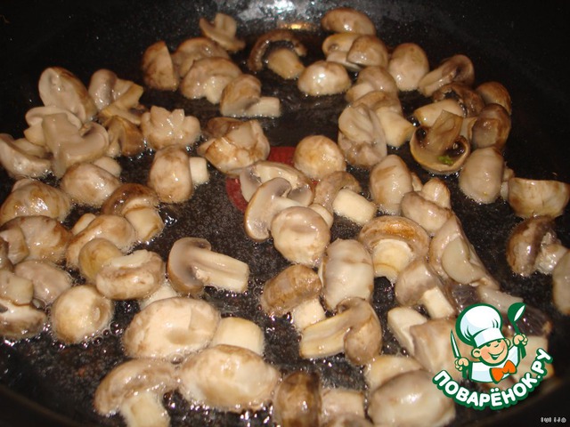 затем воду слить (в отдельную емкость), после чего шампиньоны слегка обжарить на растительном масле. -