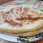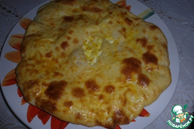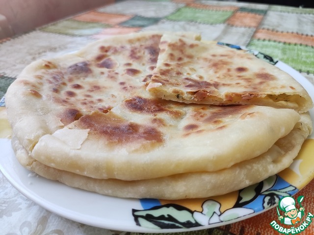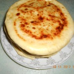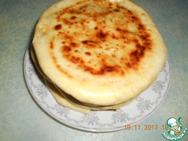 В центр кладем шар начинки, размер которого определяем так - края лепешки должны собраться над этим шаром и защипнуться.