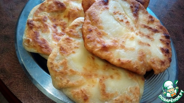 Выкладываем хачапури на сухую разогретую сковородку и жарим с одной стороны 3-5 минут.