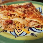 Охлажденные каннеллони нафаршировать. В посуду для запекания влить половину соуса,выложить каннеллони и залить оставшимся соусом.