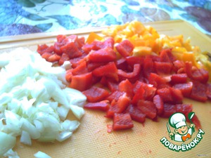 Перец и лук нарезаем кубиками.