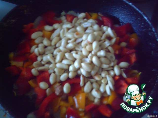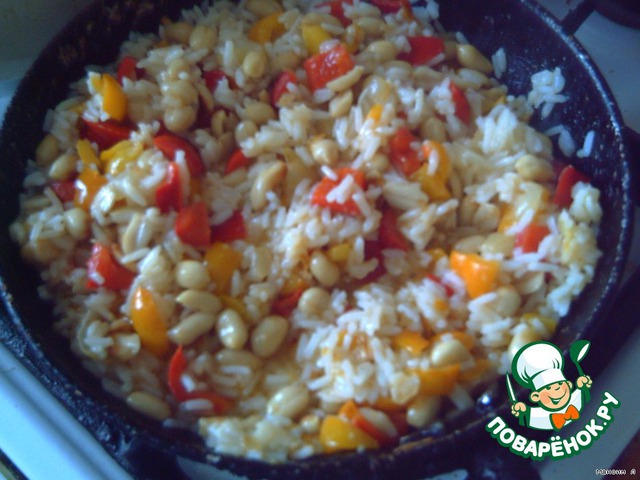 Добавляем к рису перец и орешки.
