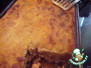 разравниваем пюре сверху поливаем оливковым маслом и посыпаем тертыми сухарями. запекаем в духовке 30 мин. при 180 гр. готово.