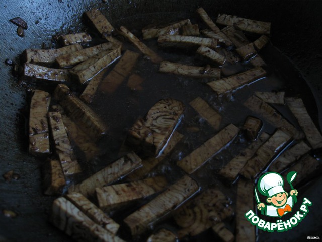Смешала с соевым соусом и дала постоять минут10, чтобы впитался соус