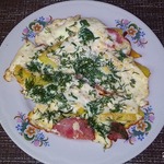 Омлет с жареным картофелем и грудинкой