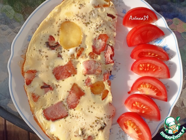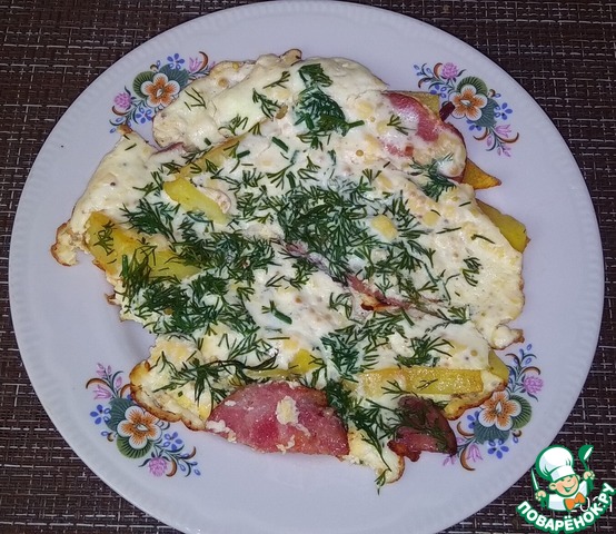 Рецепт «Омлет с жареным картофелем и грудинкой»: