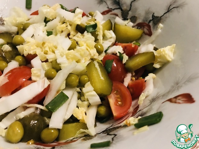 Собиралась делать Селянский салатик, да не обнаружила свежего огурца, пришлось импровизировать. Легкий, низкокалорийный салатик, подходит как худеющим, так и постящимся.