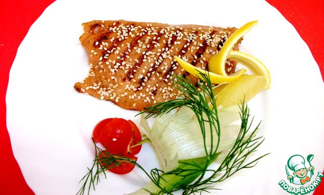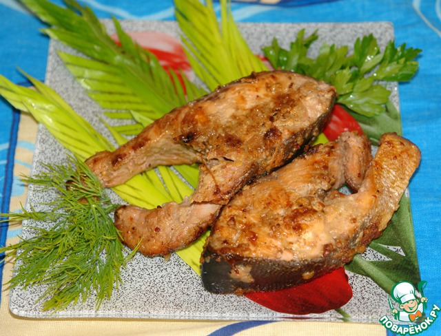 Подавать, посыпав зеленью. Рыба вкусна как в горячем, так и в холодном виде.