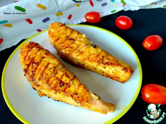 Жарить форель на разогретой сухой сковороде или на сковороде-гриль, по 5-7 минут с каждой стороны.