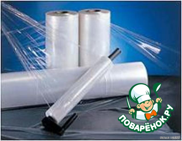 Завернуть в пищевую пленку, хорошенько замотать края, чтоб при запекании сок оставался внутри пакета.
