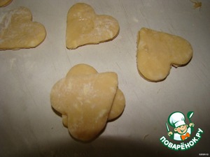 Раскатайте тесто толщиной примерно 5 мм ..С помощью формочек (или просто рюмочкой нарежьте печенье