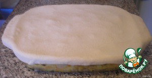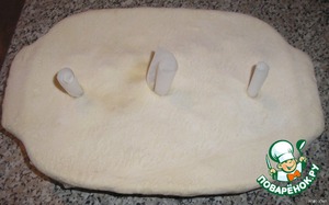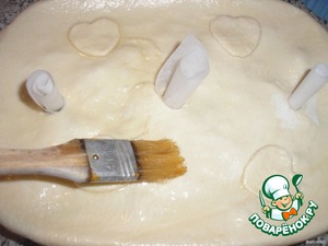 Края формы смазываем раст. маслом. Накрываем тестом. Края можно подрезать для красоты. Из них сделать украшения сверху.