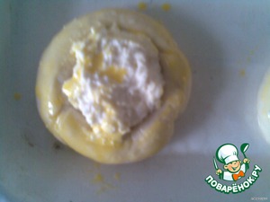 И столкнулась с еще одной проблемой. Первый раз готовила дрожжевое тесто и под рукой оказались лишь дрожжи, которые не требуют растворения в молоке. Видимо как то я не так работала с тестом, оно получилось как резиновое. Поэтому ватрушки выглядели кособоко. Но на вкус не повлияло)