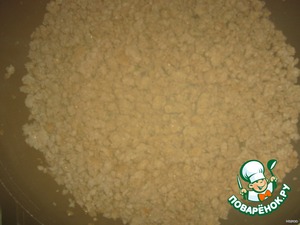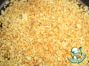 Мякиш из булочек (он такой рассыпчатый, похож на крупные панировочные сухари) тоже обжариваем на подсолнечном масле до золотистого цвета сухариков