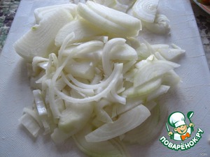 Нарезать полукольцами лук и обжарить на подсолнечном масле
