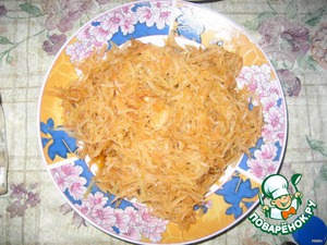 Нашинковать и потушить капусту с добавлением чайной ложки томатной пасты. Посолить по вкусу.