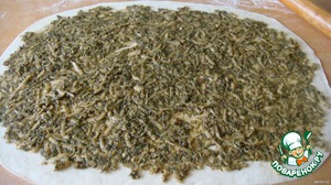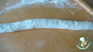 Тесто раскатать овалом,и сверху тонким слоем распределить начинку