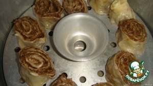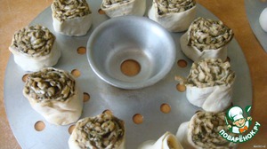 Кольца от мантоварки смазать маслом и выложить туда готовые "розочки"