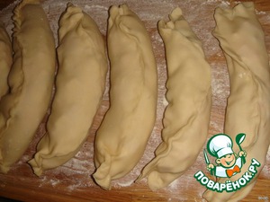 Замесить тесто. Для этого просеять 2 стакана муки, "заварить" муку 0,5 стакана кипятка. Затем добавить соль, растительное масло, оставшуюся воду, постепенно добавляя муку (еще 1,5 стакана примерно) вымесить эластичное тесто. Тесто положить в целлофановый пакет и дать ему отдохнуть.
