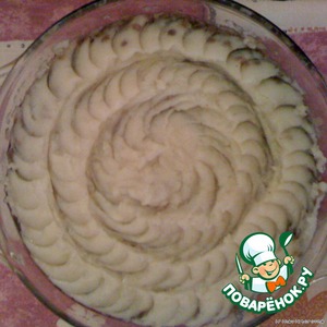 Выкладываем оставшийся картофель третьим слоем. Можно сделать узор.