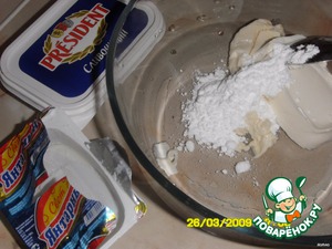 Сыр комнатной температуры взбить с сах. пудрой, -