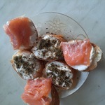 Так же пробовала вариант со слабосоленой семгой и укропом - тоже очень вкусно.