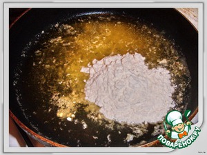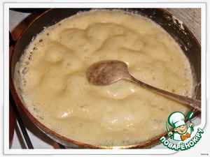 Наливаем молоко, прожариваем до тех пор, пока масса не начнет отставать от стенок сковородки. Посолить и поперчить по вкусу.