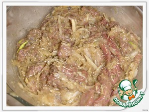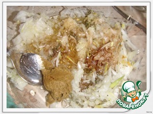 Натереть лук на крупной терке, добавить остальные ингредиенты для маринада