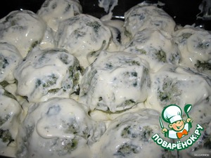 Котлетки выкладываем в форму и заливаем соусом.