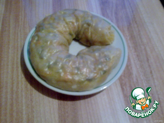 Пароварки у меня нет, поэтому уложила рулет в дуршлаг и на водяную баню, где-то на 0,5 часа.