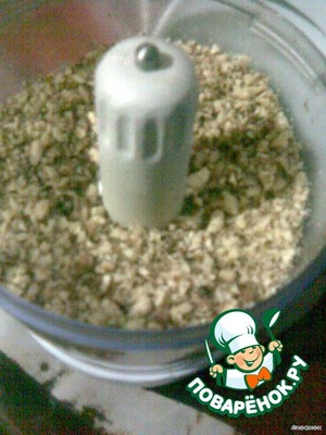 Орехи измельчить и добавить к маслу, сахару, яйцам.