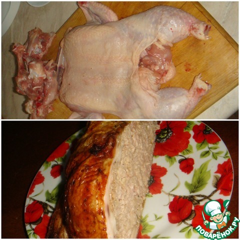 Готова тушка из которой можно делать рулеты, паштеты, начинять и внутри, и внутри + под кожей одновременно! А косточки – растаяли от любви.. к блюдам из курицы.