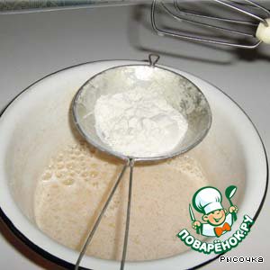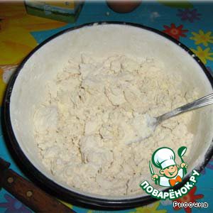 • Добавляем муку, мне кажется, что лучше ее разболтать в яйцах, чем смешивать с сыром.