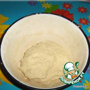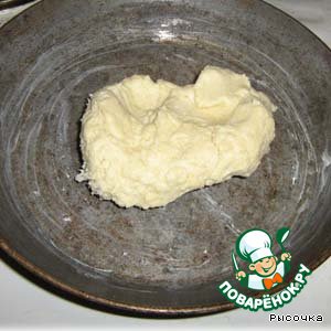 • Месить до тех пор, пока не перестанет прилипать к стенкам блюда. Накрываем и ставим в холодильник. По рецепту на 3 часа, но я оставила на 0,5 часа, пока делала начинку.
