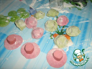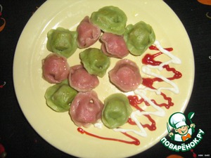 прикольно!!! Заодно мозги прочистила по поводу шпината со свеклой Красиво получилось... как розочки пельмени!!!