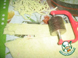 Нарезаем лапшу, если нет специального ножа, можно простым.